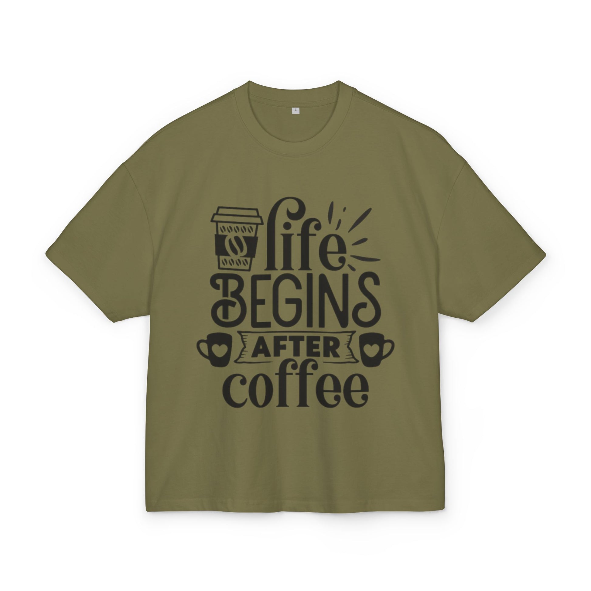 Ultra Heavy Cotton Box Tee. This shirt radiates a relaxed vibe, making it an ideal addition to any casual wardrobe. With its eye-catching design featuring the phrase 'Life Begins After Coffee,' it’s perfect for coffee lovers and those looking to embrace a laid-back lifestyle. Whether relaxing at home, meeting friends, or enjoying a cozy brunch, this tee fits seamlessly into your daily routine. Great for gifting on occasions like birthdays, holidays, or just because it’s Monday – this tee speaks to anyone who appreciates comfort and charm in their clothing.