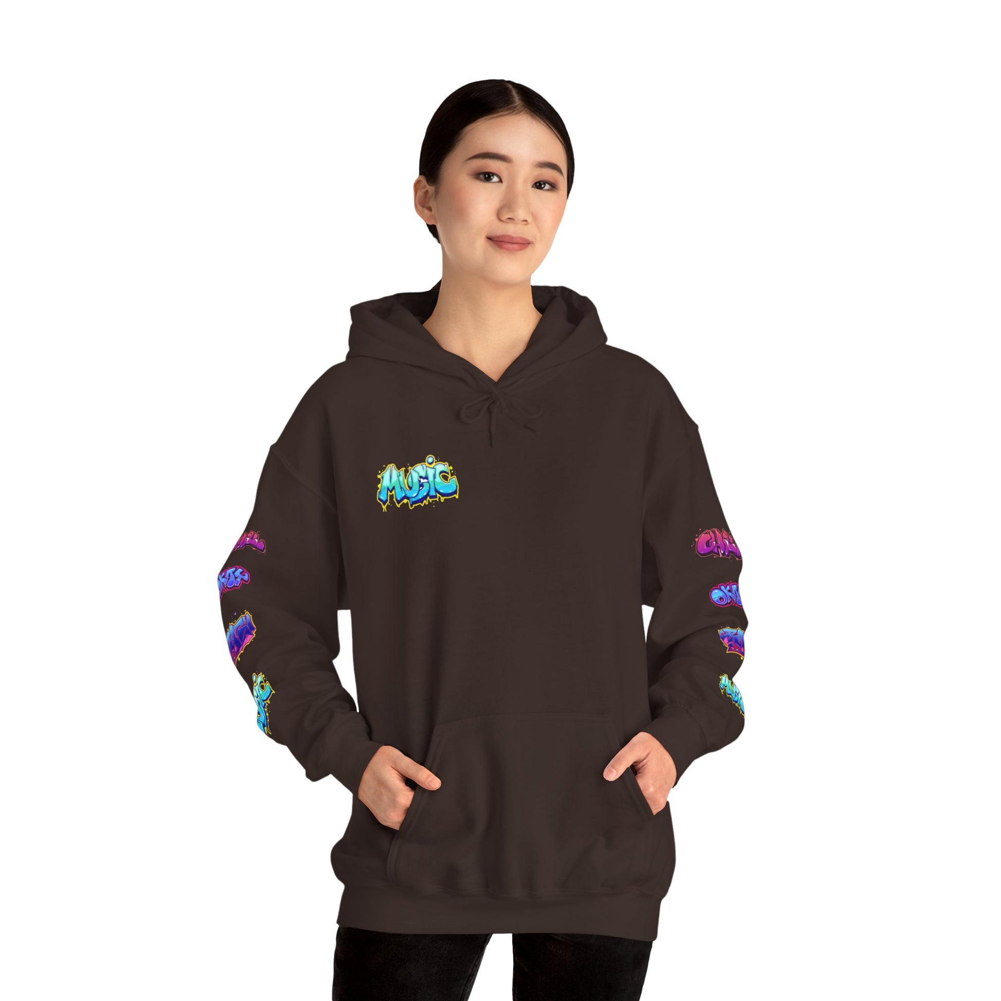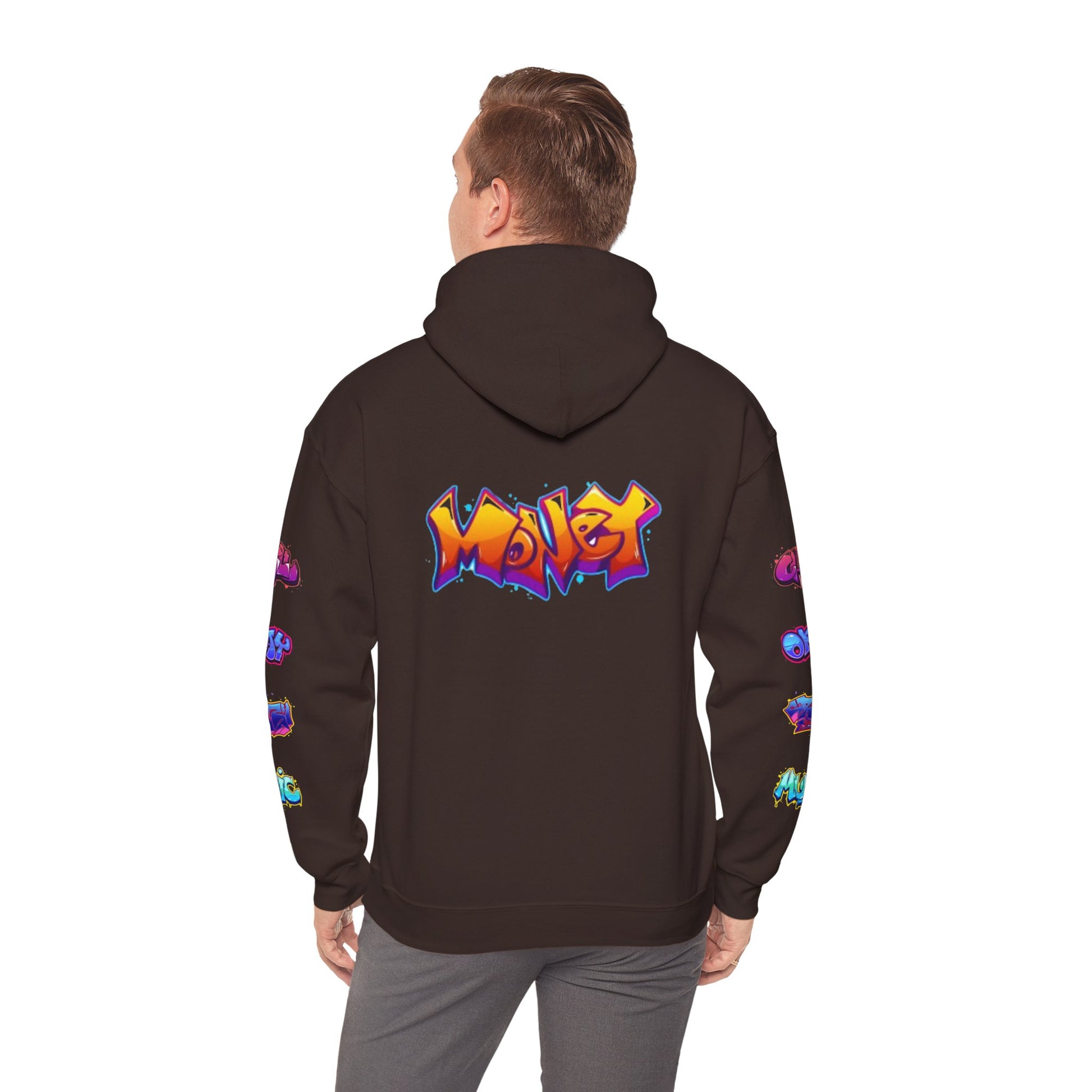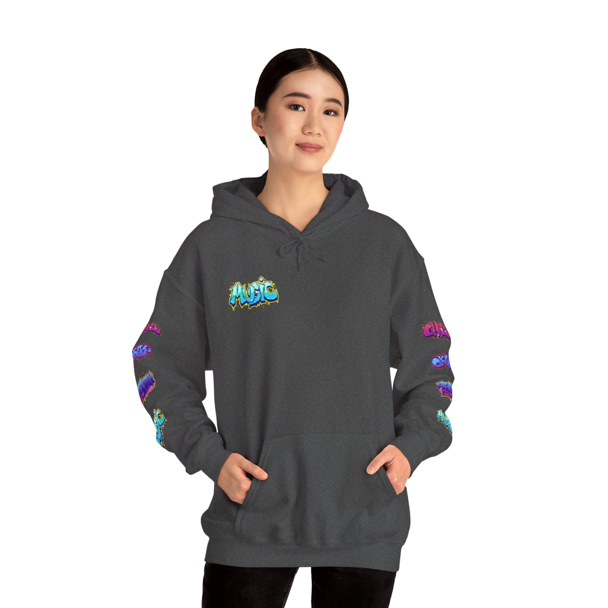 heavy blend hooded sweatshirt, perfect for the vibrant and creative spirit. The unique graffiti-inspired design infuses energy into any casual outfit, making it ideal for streetwear lovers and art enthusiasts alike. This sweatshirt radiates a fun, youthful vibe, perfect for lounging at home, hanging out with friends, or attending casual events. Great for various occasions like birthdays, art festivals, or simply as a gift for someone special. Ideal for anyone looking to express their love for art and creativity while staying warm and comfortable.