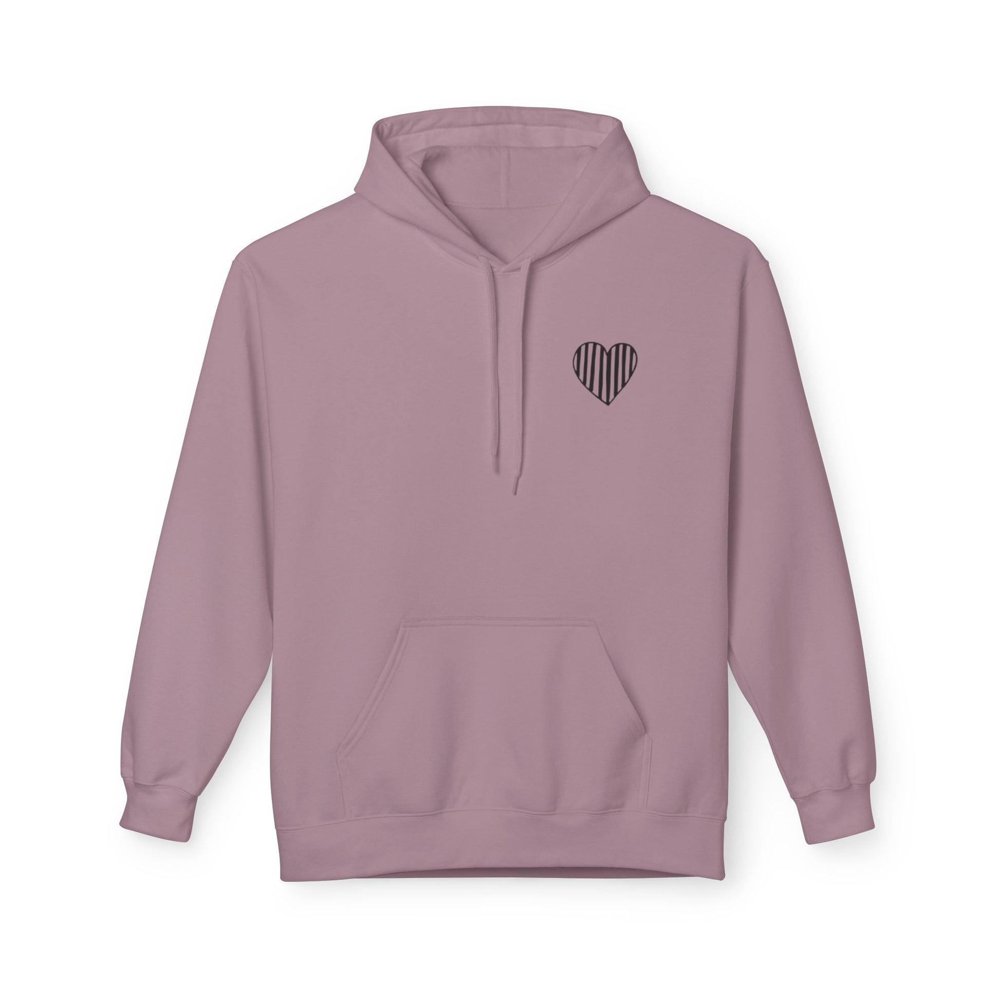 Striped Heart Fleece Hoodie - Soft, Cozy Apparel for All Seasons